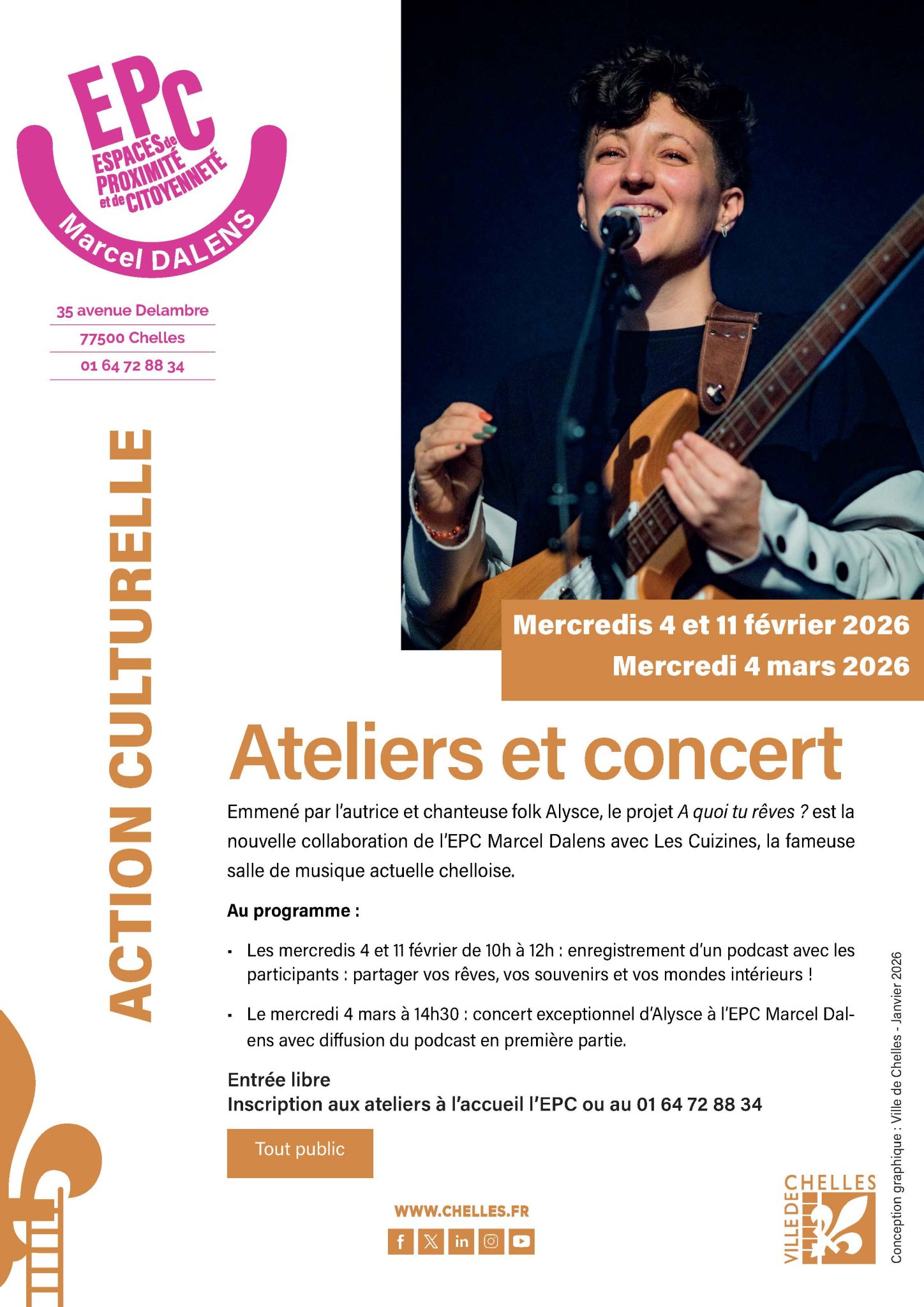 Emmené par l’autrice et chanteuse folk Alysce, le projet A quoi tu rêves ? est la nouvelle collaboration de l’EPC Marcel Dalens avec Les Cuizines, la fameuse salle de musique actuelle chelloise.
